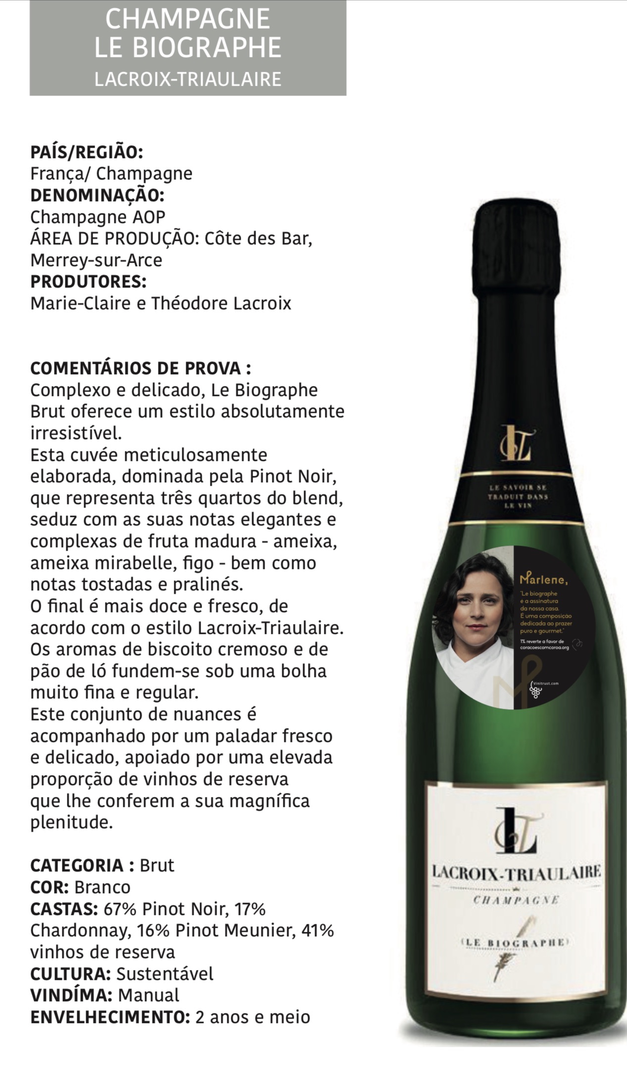 Sa directrice, Sylvie Marques Martine, a établi aujourd'hui un partenariat avec la Chef Marlene Vieira pour le lancement du champagne Le Biographe ; qui accompagnera délicieusement vos célébrations de Noël, en contribuant à l'associationCorações com Coroa.