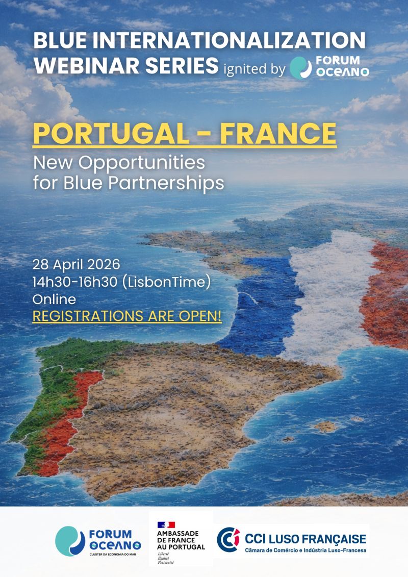 Dans le cadre de la série de webinaires Blue Internationalization, organisée par Fórum Oceano avec le soutien institutionnel de l’Ambassade de France au Portugal, la CCILF – Chambre de Commerce et d’Industrie Luso-Française invite l’ensemble de ses membres et partenaires — entreprises, centres de recherche, institutions et autres acteurs — à participer à un webinaire dédié au développement des partenariats bleus entre le Portugal et la France.