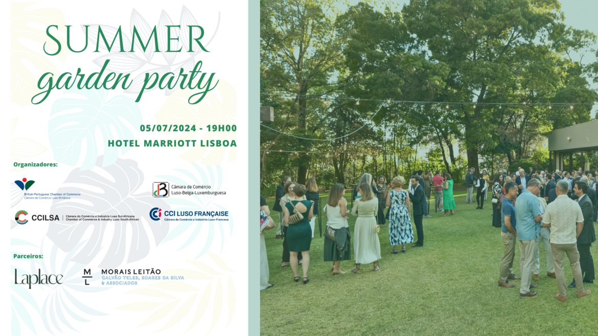 La Chambre de Commerce et d’Industrie Luso-Française, en collaboration avec les Chambres de Commerce Luso-Britannique, Luso-Belge-Luxembourgeoise et Luso-Sud-Africaine, a le plaisir de vous inviter à participer à la Summer Garden Party organisée dans les jardins de l'hôtel Marriott Lisbonne. Venez fêter l'été avec nous !