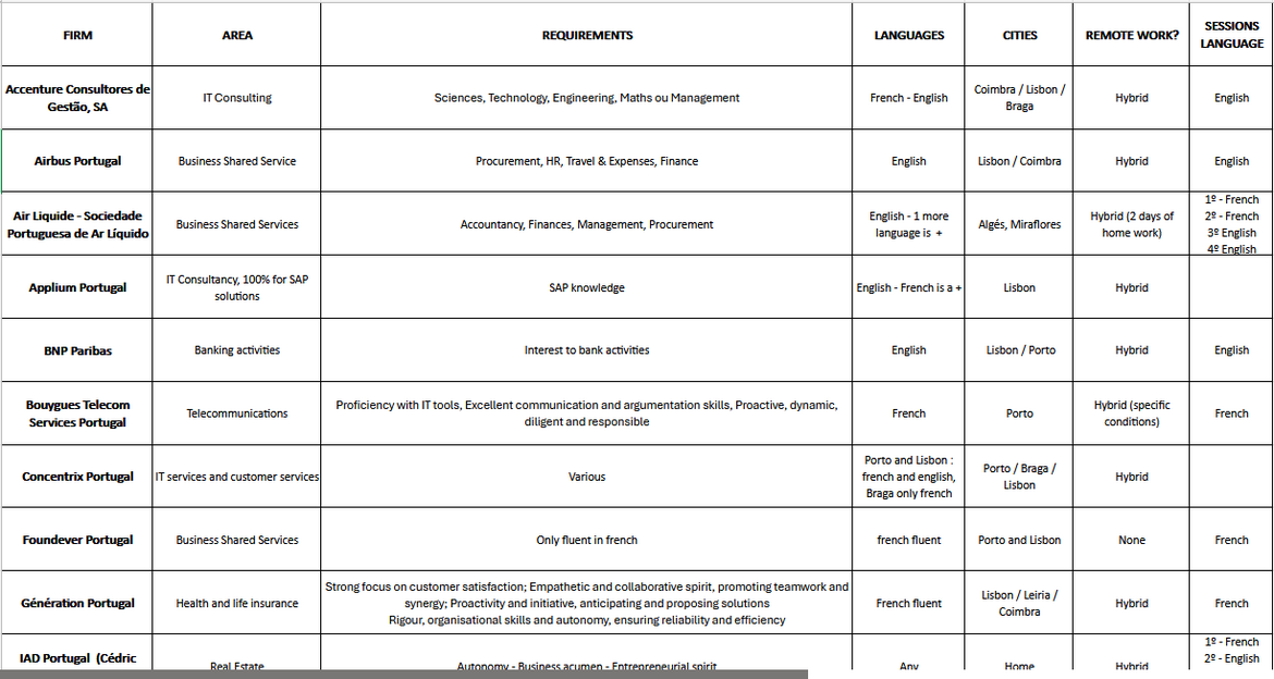 If you are interested in a position and did not attend the Employment Forum, please contact us at the dedicated address: emploi(@)ccilf.pt.